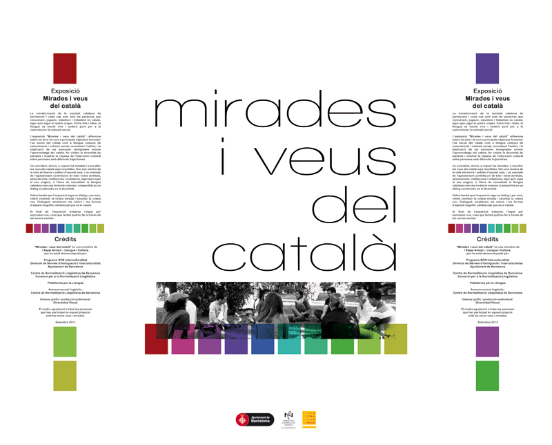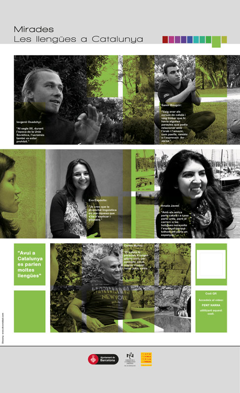 Miradas y voces del catalán es una exposición que tiene como objetivo fomentar el uso social del catalán como lengua común y poner en valor el esfuerzo de las personas inmigradas hacia el aprendizaje del catalán. A la vez, quiere hacer visible la diversidad lingüística y cultural de Cataluña haciendo evidente la riqueza del intercambio cultural entre personas con diferentes trayectorias. Cliente: Ayuntamiento de Barcelona, España